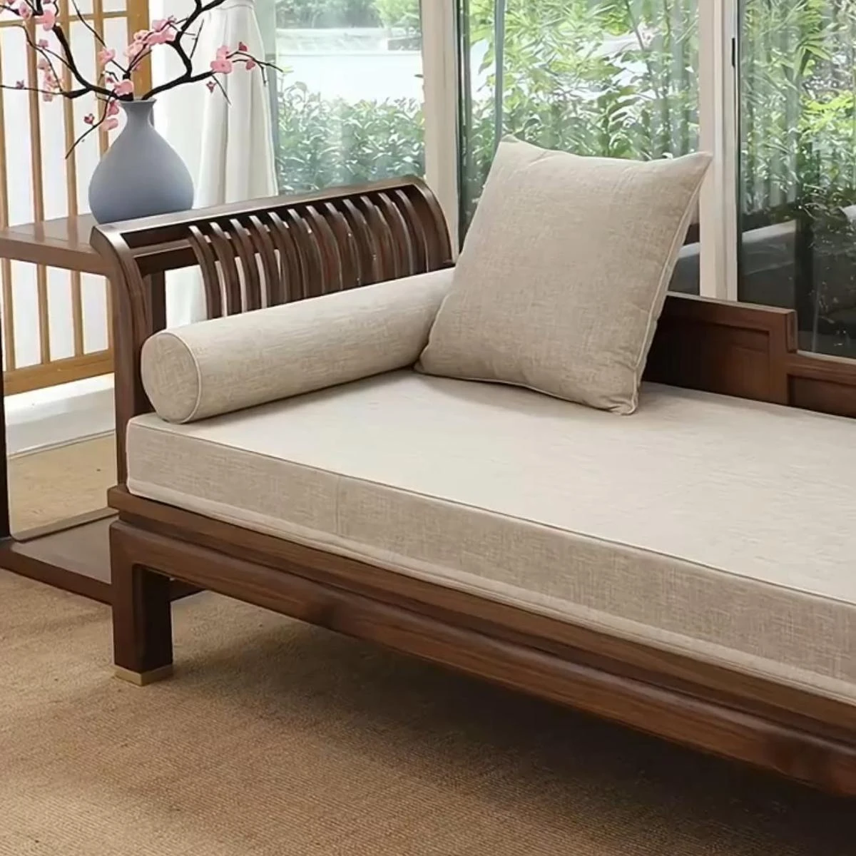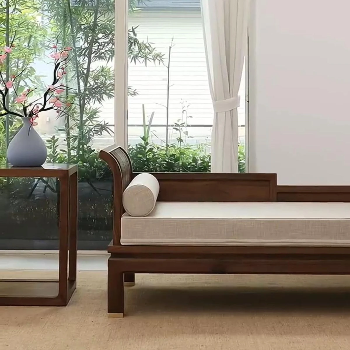 新中式禅スタイルの北米ブラックウォールナットとホワイトアッシュの貴妃ソファベッド。オフィスやホテル、民宿に最適なエレガントなリビング家具。心安らぐ空間を演出します。