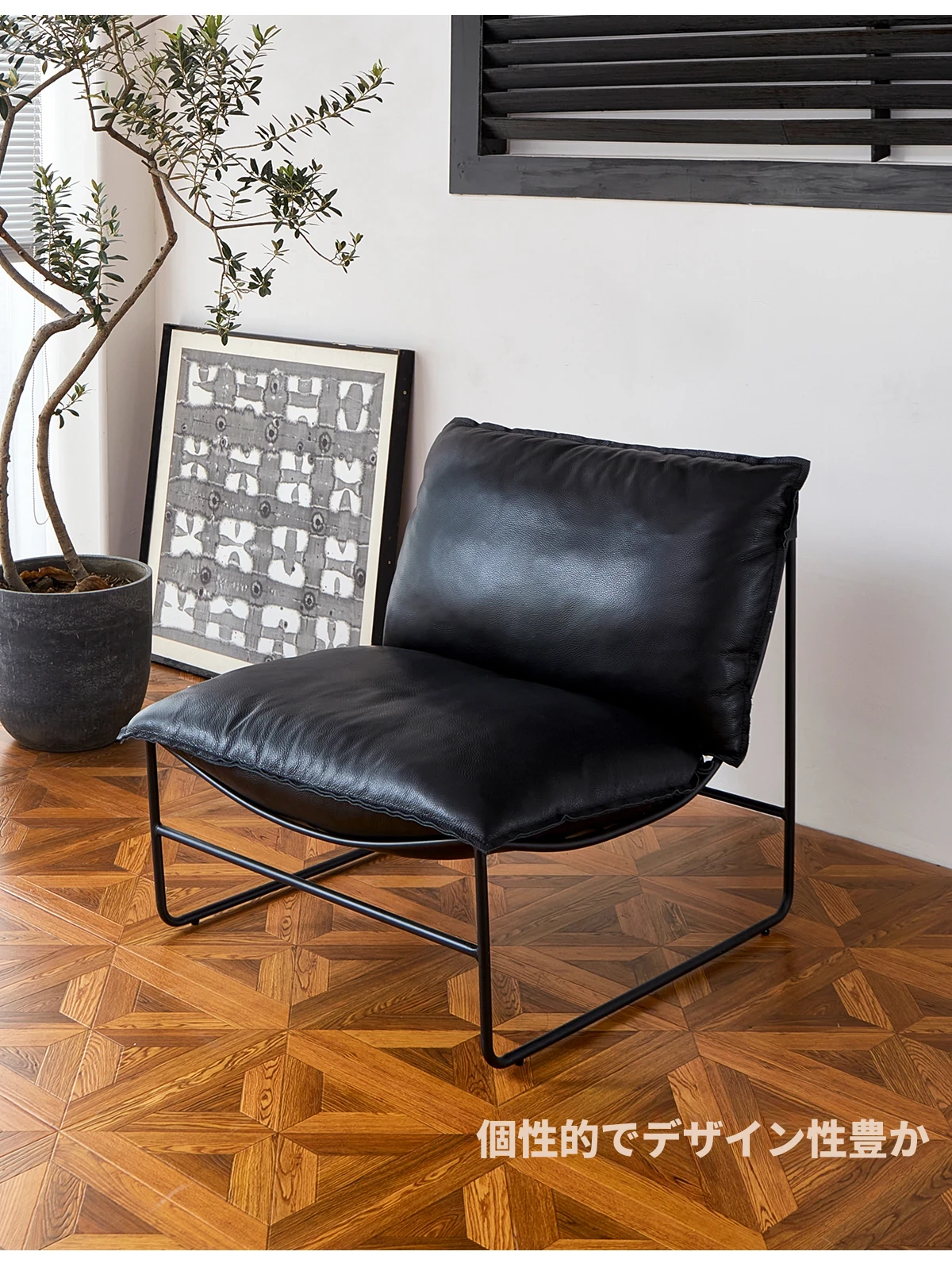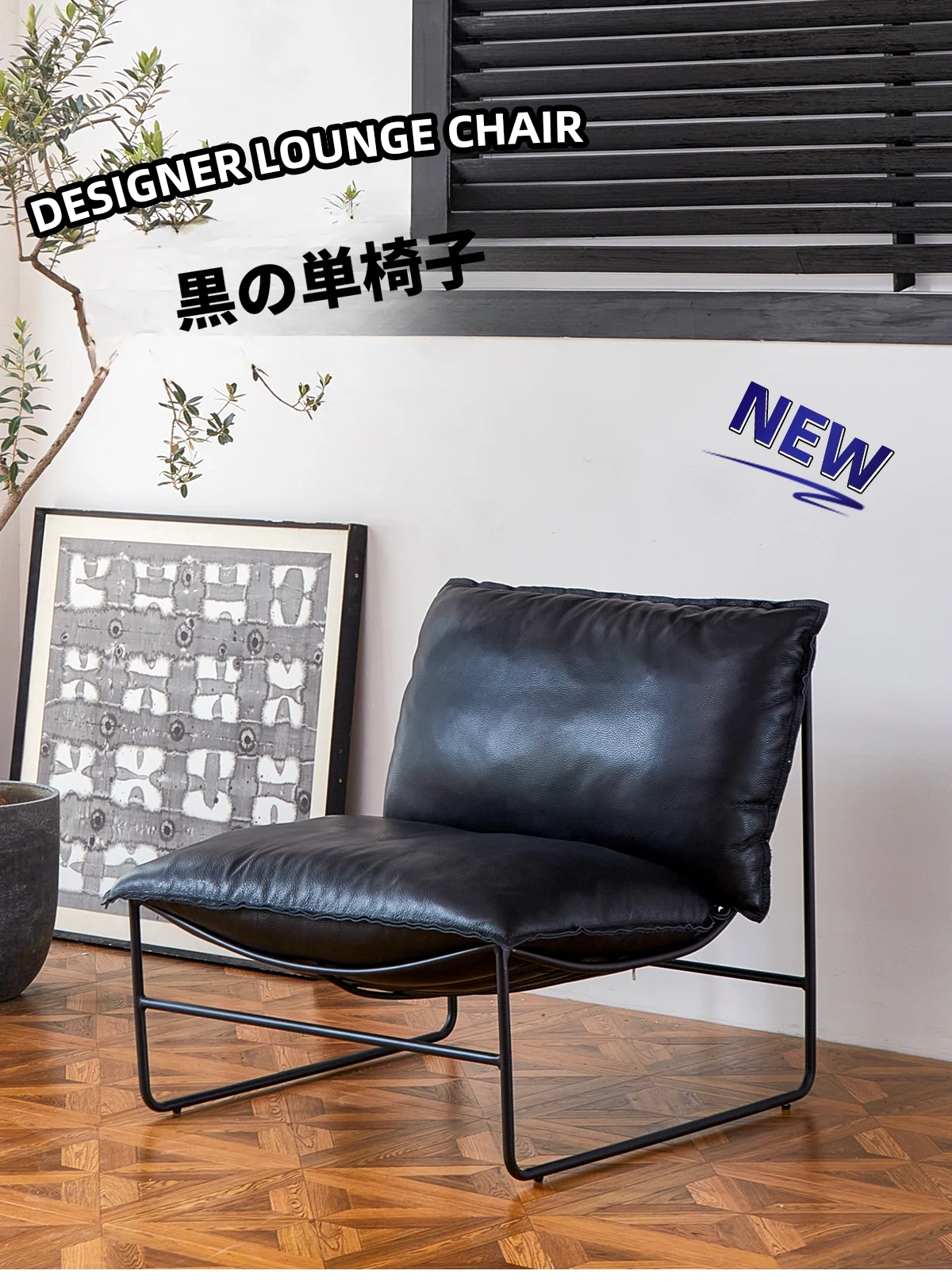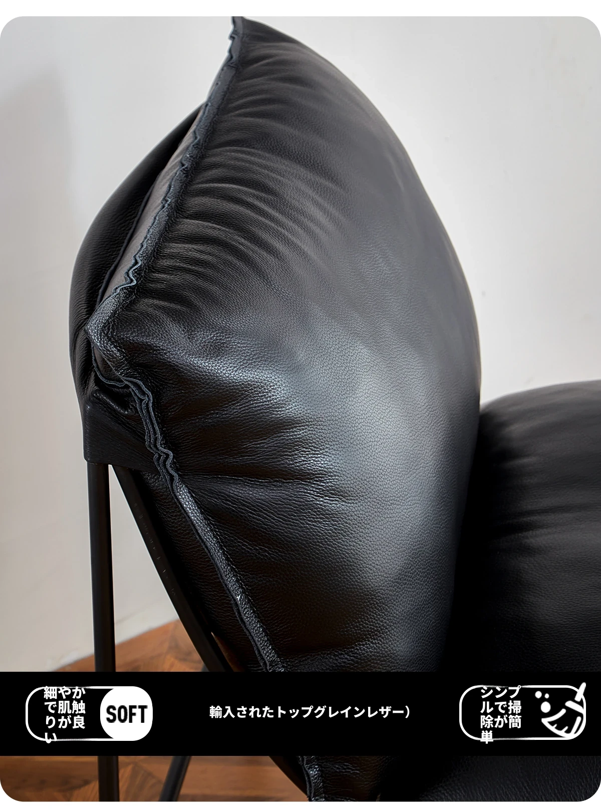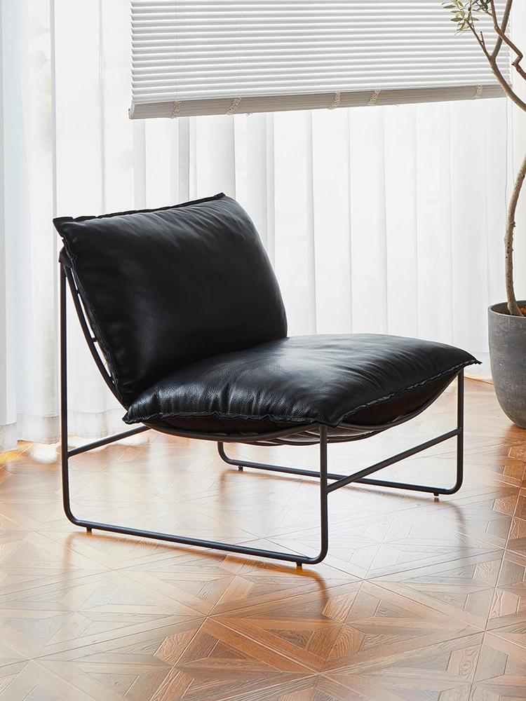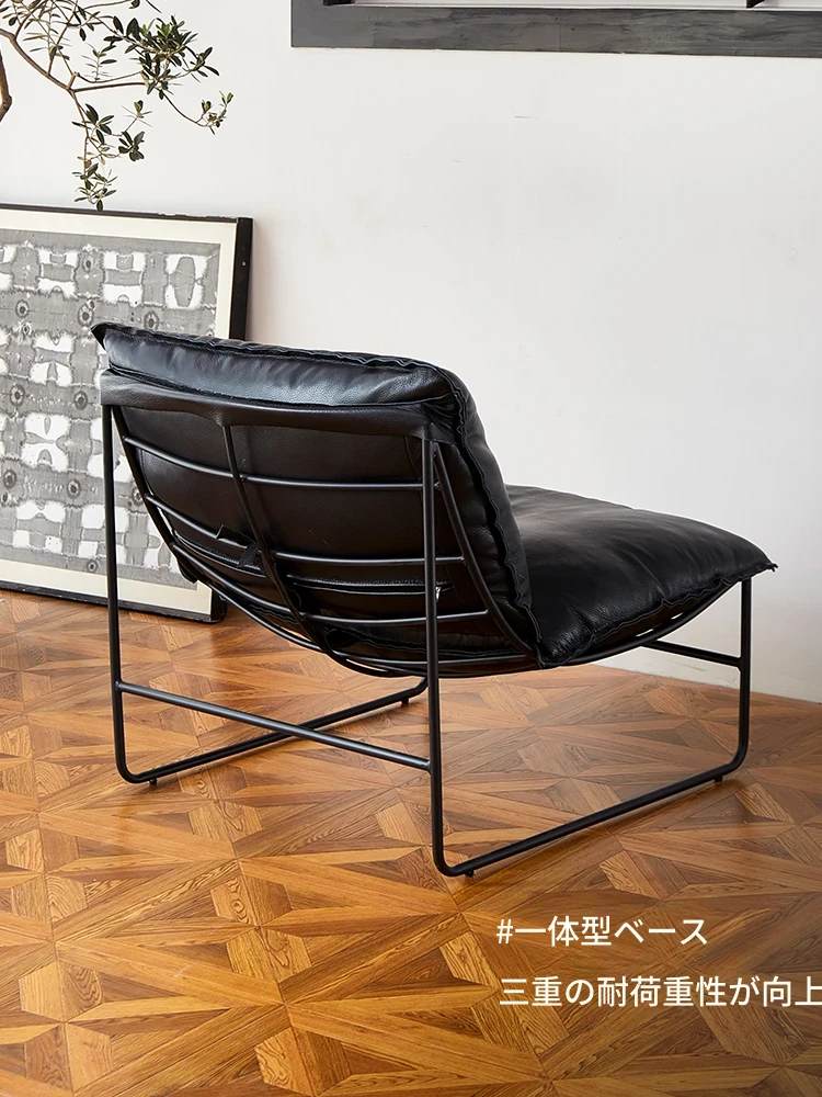北欧デザインの一人掛けソファ|本革製|小型アパートや寝室、バルコニーに最適なアイアンフレームのリクライニングチェアで、快適なひとときをお楽しみください!