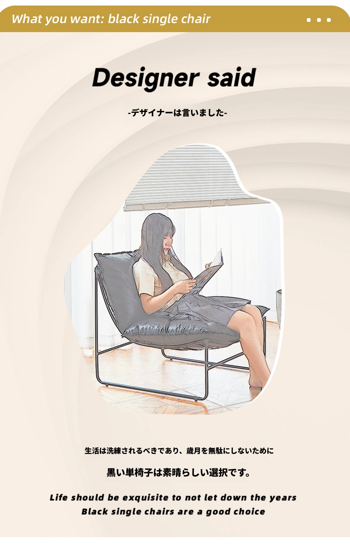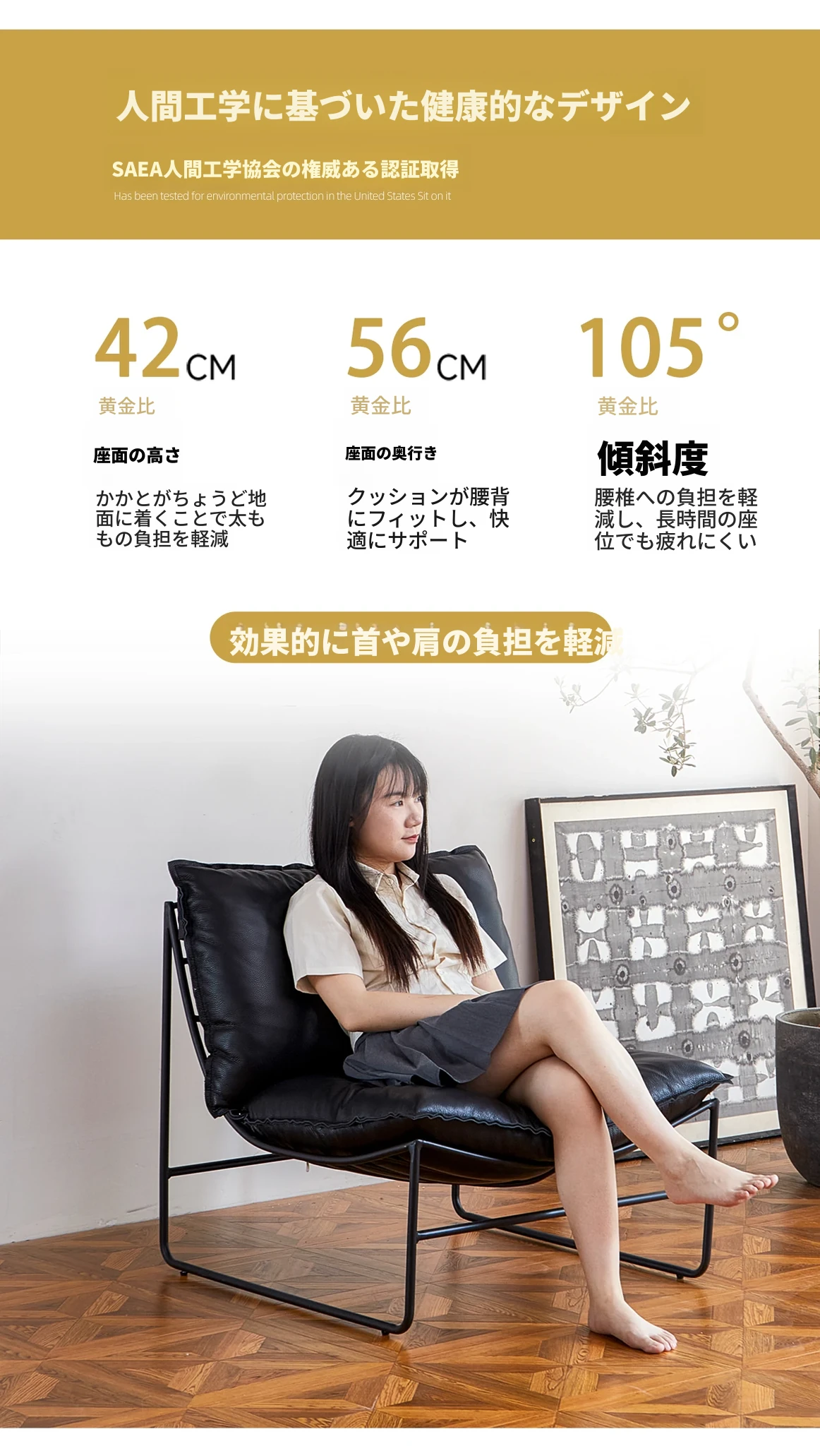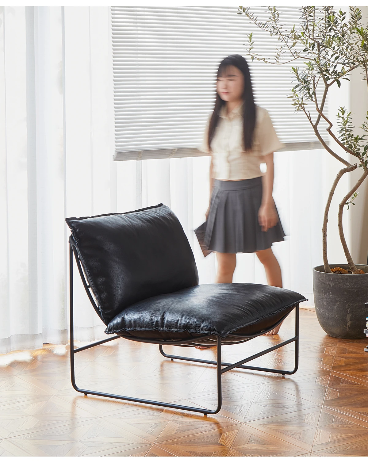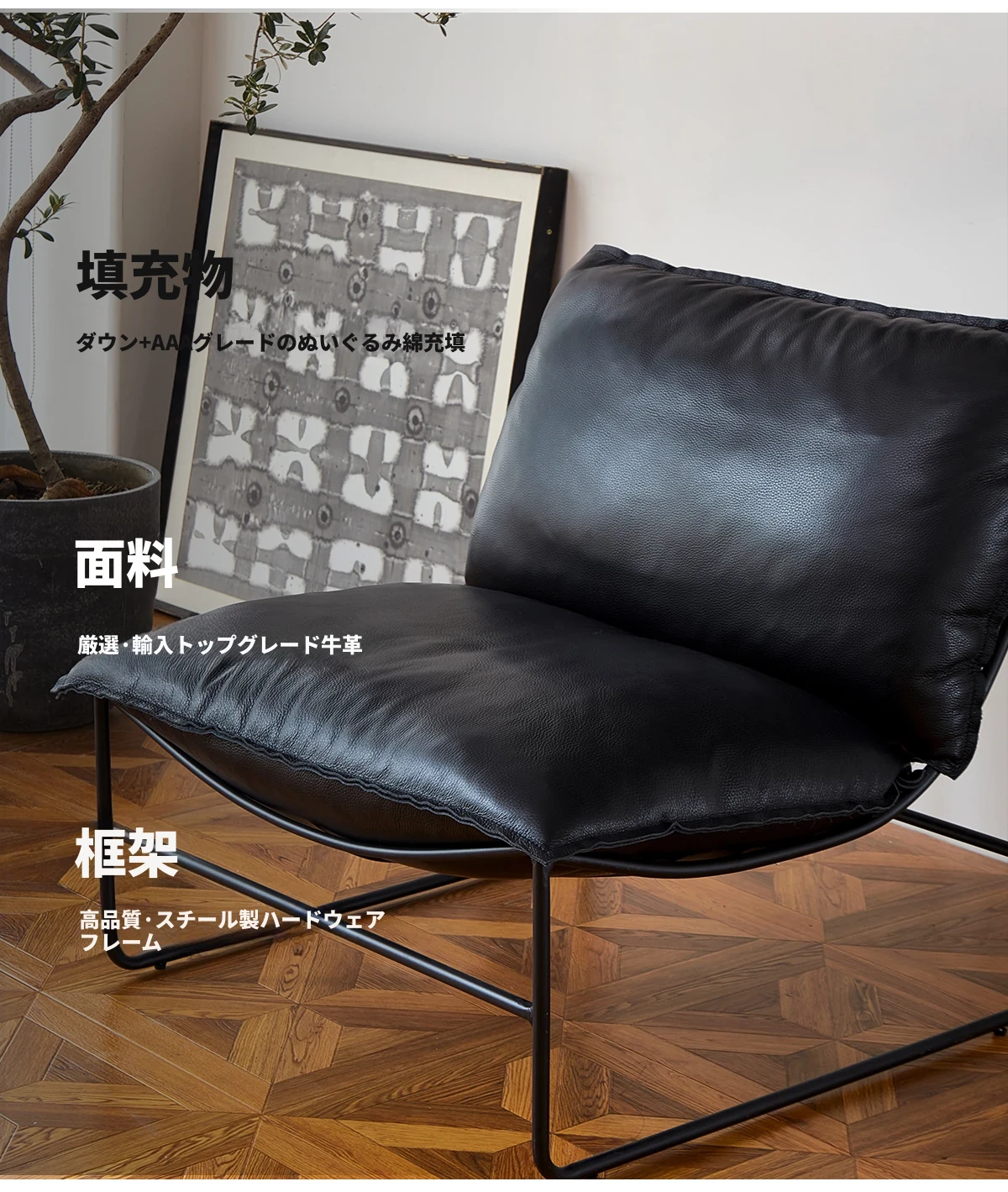 北欧デザインの一人掛けソファ|本革製|小型アパートや寝室、バルコニーに最適なアイアンフレームのリクライニングチェアで、快適なひとときをお楽しみください!