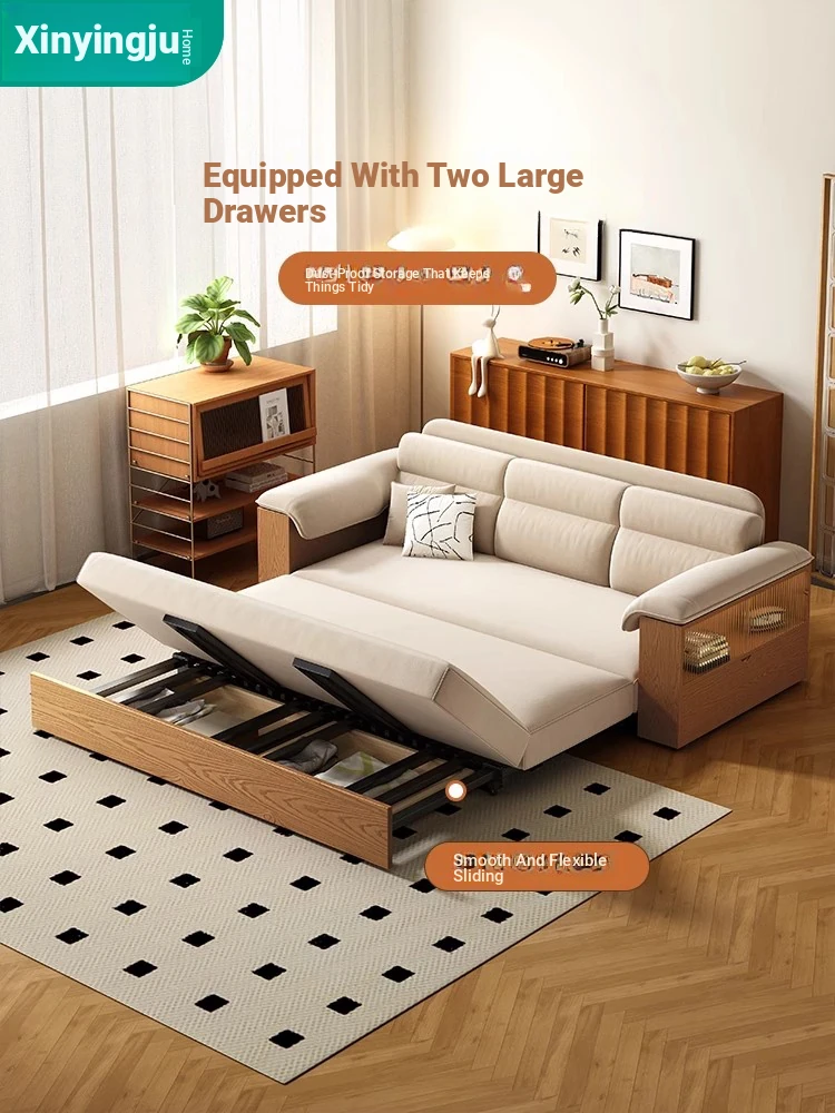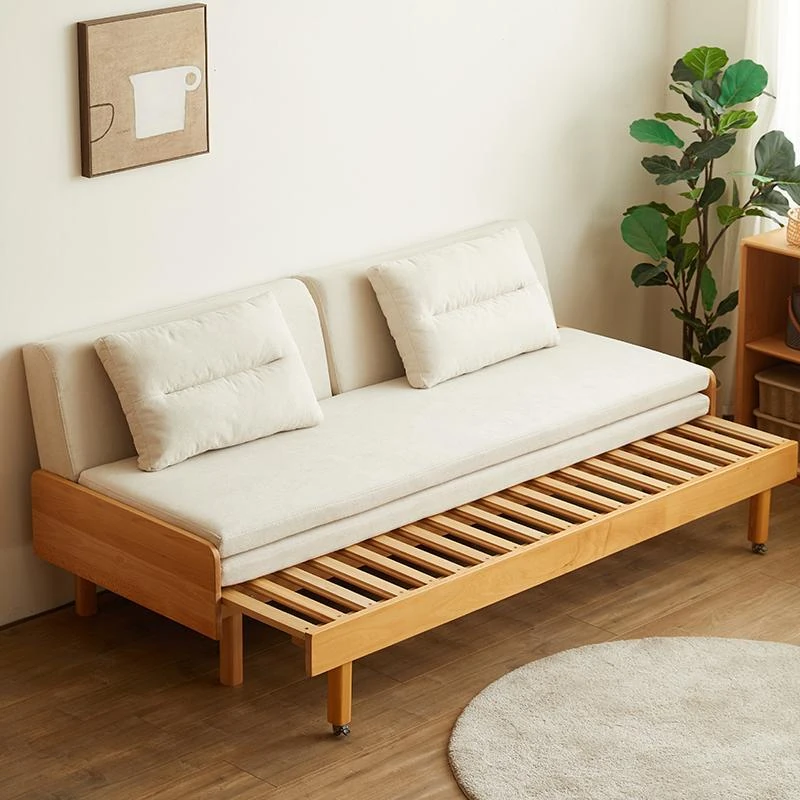 Modern Minimalist Solid Wood Sofa Bed - 2025 New Model for Small Apartments, Versatile Double Folding Expandable Bed for Living Rooms