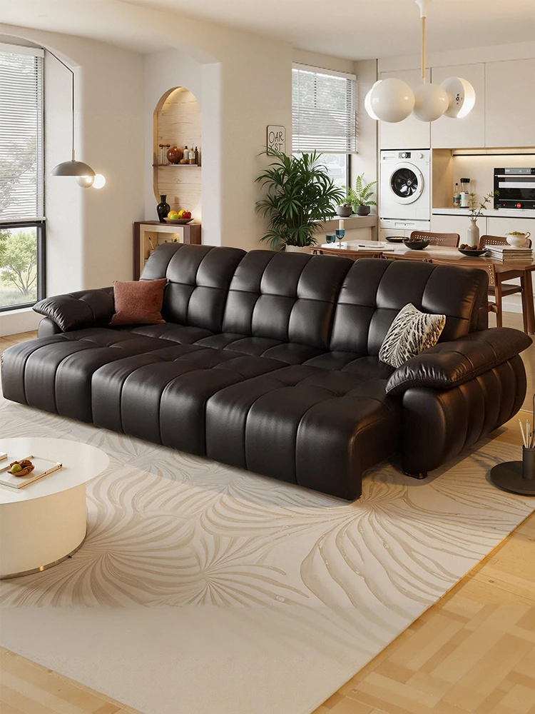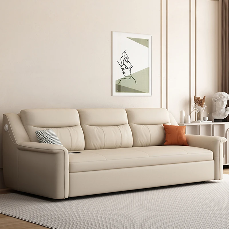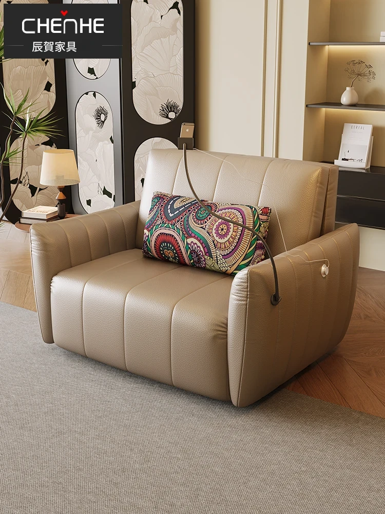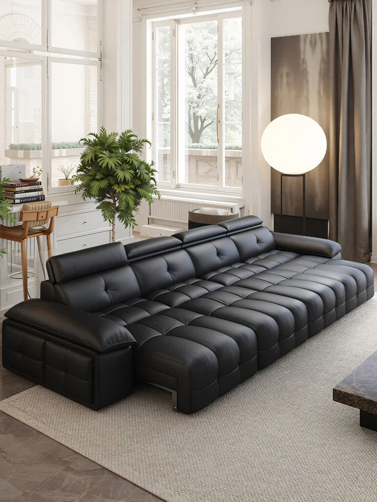 電動機能付き本革ソファベッド|高級牛革使用のイタリアンシンプルレトロデザイン|伸縮可能な雲のような快適さを提供するリビング用ソファ!