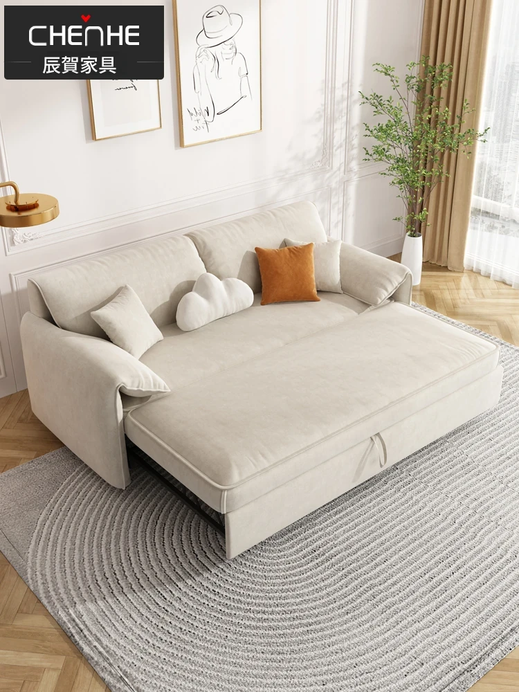 テクノロジー布製ソファベッド 折りたたみ式2WAY 小型アパート向け ダブルサイズ リビングルーム用 2022年トレンド 新作エレファントイヤーデザインでおしゃれと機能性を両立!