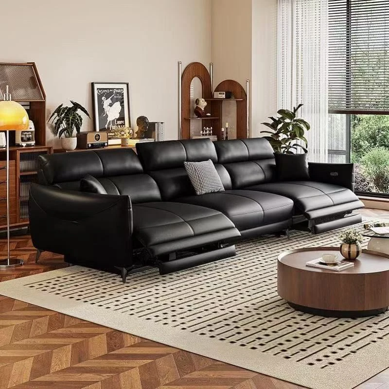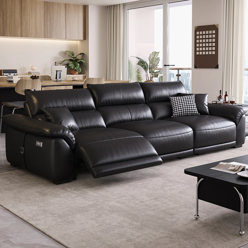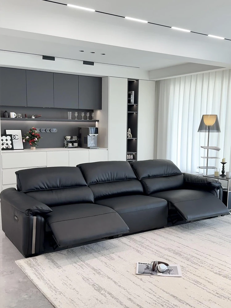 本革使用の高級牛革電動リクライニングソファ - 壁にぴったりフィットする多機能リビング用ソファ、快適さとスタイルを兼ね備えた理想的な家具です。