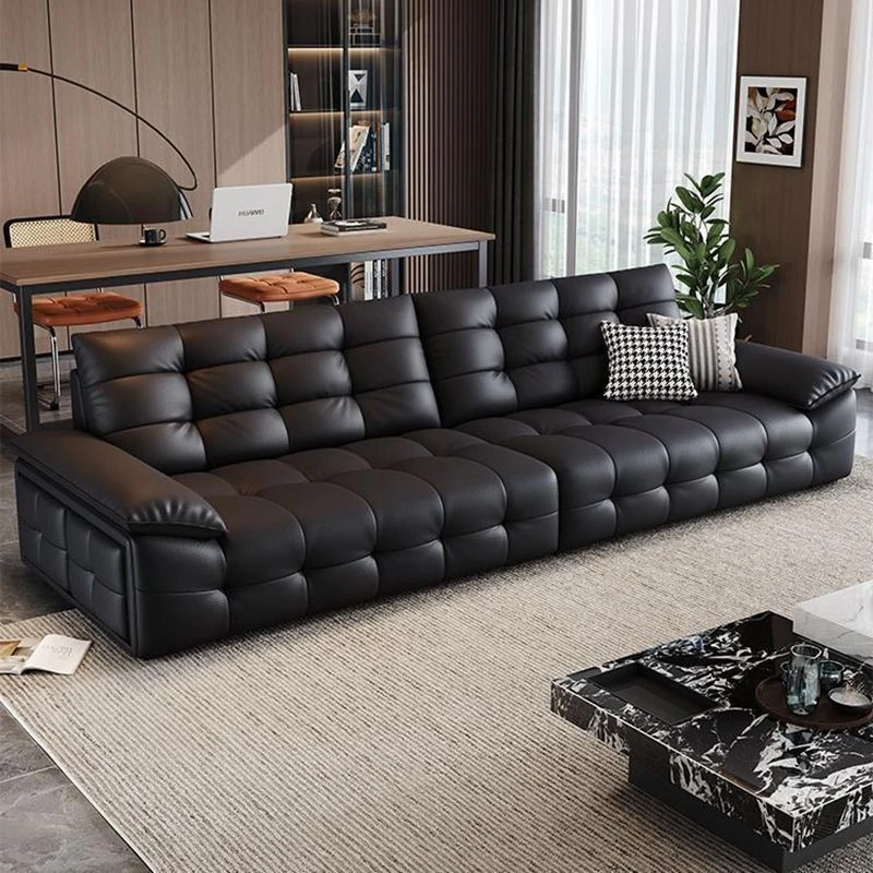 森華派の軽奢中古風リモコン操作可能な本革ソファ。小型リビングに最適!背もたれなしで空間を有効活用。スタイリッシュで快適な居住空間を演出!