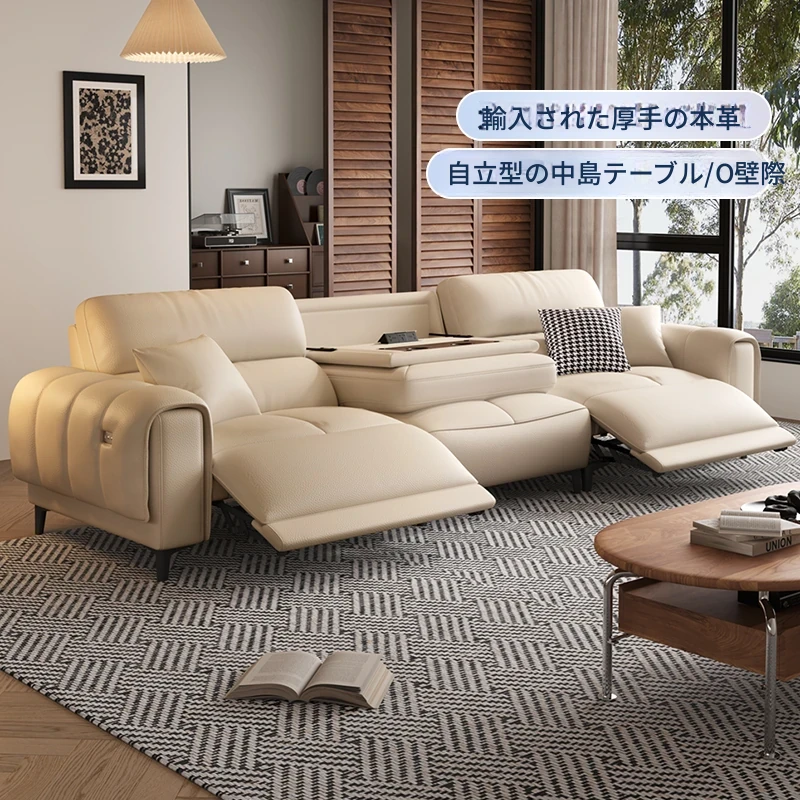 最高級の宇宙機能ソファ!電動リクライニング・モダンデザインの本革製リビングルーム用ソファ。背もたれなしでスッキリ、上質な牛革使用で贅沢なひとときを。あなたのリビングを特別な空間に変えます!